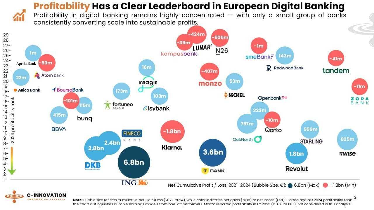 🇪🇺 La rentabilidad de la banca digital europea no está distribuida de manera uniforme.