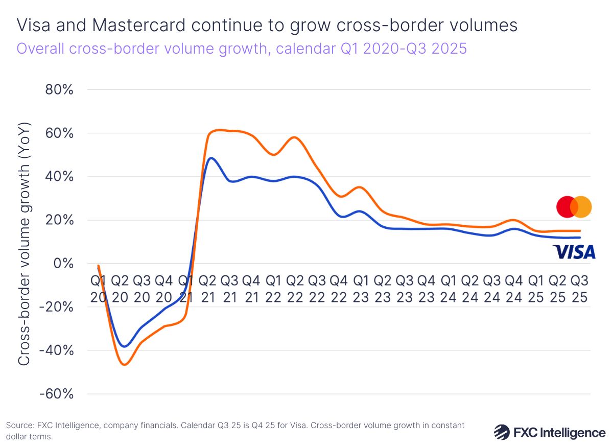 💰 Visa y Mastercard han dado a conocer sus últimos resultados, en los que el volumen transfronterizo sigue siendo un factor clave para ambas empresas.